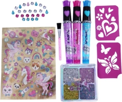 Incroyable studio de tatouage pour enfants, qui permet de décorer les cheveux et le corps avec des motifs colorés et des pierres.