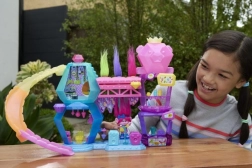 Entrez dans l’univers de Trolls Mount Rageous avec l’adorable poupée Poppy, quatre Hair Pops et plus de 25 accessoires pour des histoires sans fin. Ce coffret de jeu à deux niveaux avec toboggan, coin bar, vestiaire et scène offre une foule d’activités interactives, dont un lanceur de Hair Pops – poussez le joyau et regardez les Hair Pops s’envoler ! Idéal pour le jeu créatif des enfants dès 3 ans.