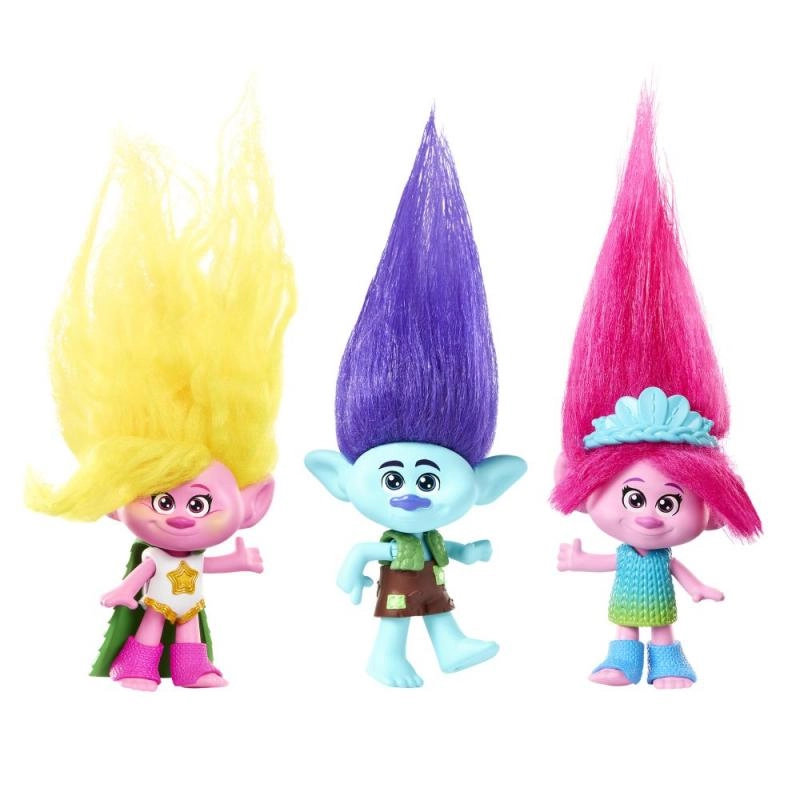Découvrez les décors emblématiques du film TROLLS BAND TOGETHER dans le coffret haut en couleurs Mount Rageous. Les enfants peuvent coiffer les longs cheveux de Poppy, cacher de petits objets dans les Hair Pops, organiser des concerts sur scène et dévaler le toboggan entre les étages. Plus de 25 accessoires de mode et de jeu (micro, portemanteau, guitare avec « joyau » et bien d’autres) stimulent l’imagination et le rôle de la reine Poppy.