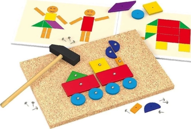Jeu amusant et éducatif pour petits bricoleurs, qui développe la motricité fine, la créativité et la coordination œil–main. À l’aide d’un marteau, de petits clous et de 50 pièces en bois de formes et de couleurs variées, les enfants créent sur une planche en liège stable des images colorées selon des modèles ou leur propre imagination.