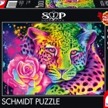 Assemblez l'image fascinante d'un léopard néon avec ce puzzle de SCHMIDT. Mille pièces qui vous plongent dans le monde créatif de l'assemblage.