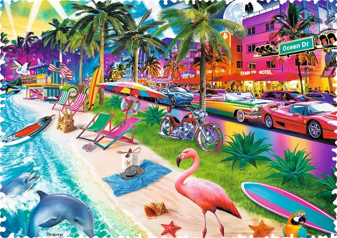 Le motif Plage de Miami vous transporte sur un littoral ensoleillé à l’ambiance estivale. Avec des dimensions d’environ 68 × 48 cm une fois assemblé, l’image est parfaite pour être encadrée et exposée.