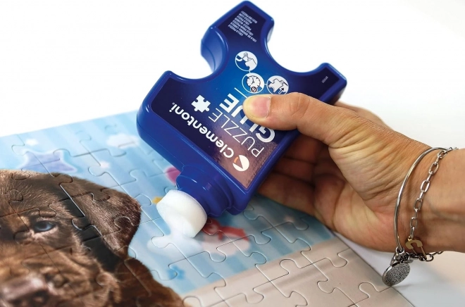 La colle spéciale CLEMENTONI est conçue spécialement pour les puzzles – après application, elle réunit les pièces en un ensemble solide, permettant de transporter, d’encadrer ou d’exposer l’image finie en toute confiance. Grâce à l’applicateur éponge, la colle s’étale rapidement et uniformément, sans traces ni gouttes.