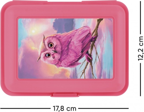 La chouette de couleur rose est joliment représentée sur la boîte, ce qui rend chaque repas amusant.