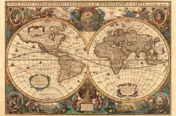 - Motif historique : vieille carte du monde détaillée avec de nombreux éléments décoratifs.