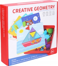Une mosaïque créative avec des formes géométriques pour enfants qui développe la motricité fine, la pensée logique et la créativité. Le coffret comprend une plaque 25 × 25 cm, 22 formes et 12 modèles pour assembler facilement des images.