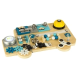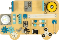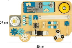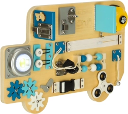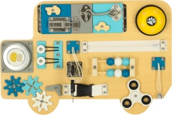 La planche sensorielle en forme d’autobus ravira tous les petits fans de moyens de transport. Les détails en bois sur le thème de l’automobile, les images cachées de la station de lavage et de la station-service ainsi que les éléments mobiles stimulent la curiosité et apprennent aux enfants les principes de cause à effet.