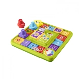 • Jouet interactif avec plateau de formes et zones d’activités.