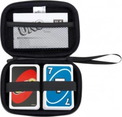 Organisez vos cartes UNO avec cet étui de voyage pratique. Cela garantit que vous aurez toujours vos cartes à portée de main et en sécurité contre l'humidité. L'étui est doté d'une poche intérieure en maille, parfaite pour ranger le manuel du jeu.