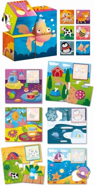 Découvrez les cubes en bois avec des animaux, qui aident les enfants à trouver des motifs logiques et à développer leurs capacités cognitives. Ce jouet est sûr et convient aux enfants dès 1 an :