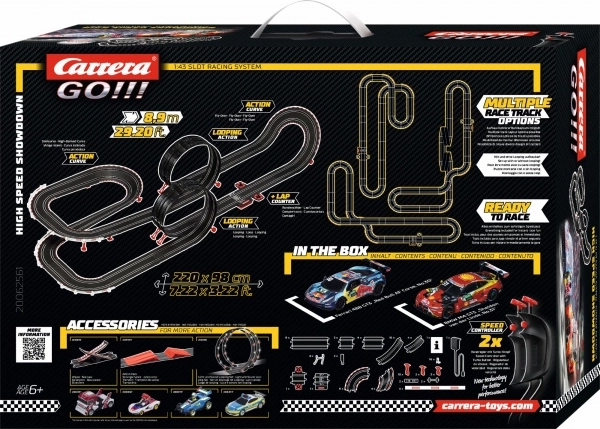 Le circuit Carrera GO vous plonge dans l’univers de la haute vitesse et du pilotage précis. Grâce à l’échelle 1:43, vous obtenez un circuit compact mais dynamique, richement équipé : deux loopings, un virage relevé et un mur vertical pour des manœuvres pleines d’adrénaline. Le compteur de tours mécanique maintient des courses équitables et la fonction Turbo sur les manettes apporte le coup de fouet nécessaire sur la ligne d’arrivée.