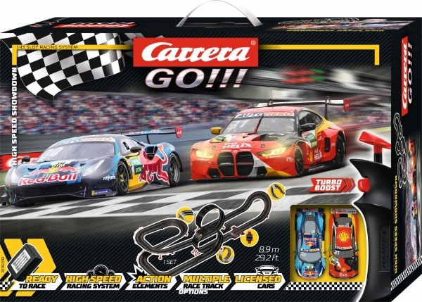 Vivez des courses palpitantes à la maison avec le circuit Carrera GO DTM High Speed Show de 8,9 m. Le set propose deux loopings, des virages relevés, un mur vertical et un compteur de tours. Sont inclus des voitures détaillées BMW M4 GT3 et Ferrari 488 GT3 sous licence DTM, des manettes avec fonction Turbo et un montage facile grâce au système de clips.