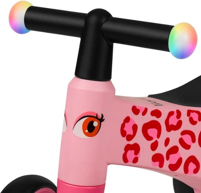Adorable draisienne pour enfants Lionelo Sammy Pink Rose, inspirée par la panthère rose, favorisant le développement de l’équilibre et de la motricité. Elle dispose de 4 roues stables, d’une conception ergonomique, d’une selle confortable à double rembourrage et de embouts de poignées lumineux avec capteur de mouvement. Sa structure légère se transporte et s’entretient facilement – il suffit de l’essuyer avec un chiffon humide.