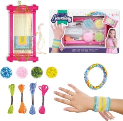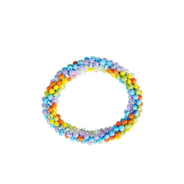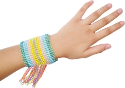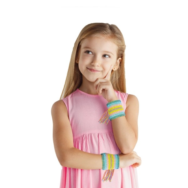 Tresse ton propre bracelet assorti à ta tenue. Un super passe-temps pour les moments libres. Crée un bijou vraiment original que personne d’autre n’aura ! Le kit contient 4 fils de coton colorés, 4 couleurs de perles et un métier à tisser. Dimensions du produit : 25 x 15 x 3 cm. Convient aux enfants à partir de 8 ans.