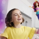 Inclut un adorable hippocampe qui peut être attaché au bras d'Ariel, un diadème, un collier et un plongeur. Les enfants peuvent recréer des moments préférés du film ou inventer leurs propres aventures sous-marines. Ariel a de longs cheveux roux et une queue de sirène éclatante avec un haut coquillage et une nageoire métallique douce.