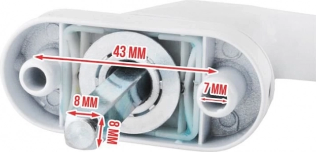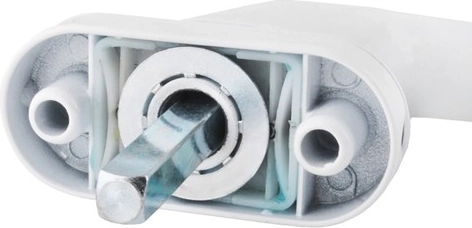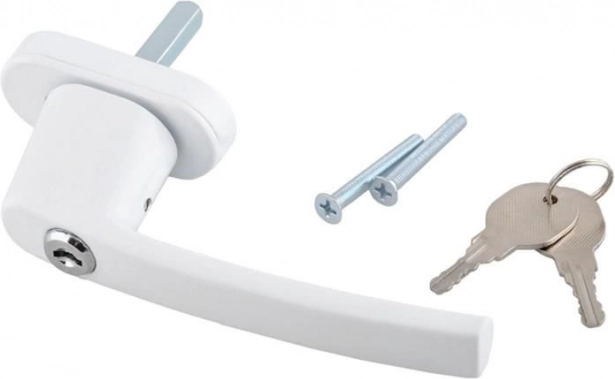 La poignée est fabriquée dans une combinaison résistante de métal et de plastique, avec un aspect blanc épuré et une prise en main confortable. L’installation est rapide et réalisable soi-même – tout le nécessaire est fourni, y compris les vis et 2 clés.