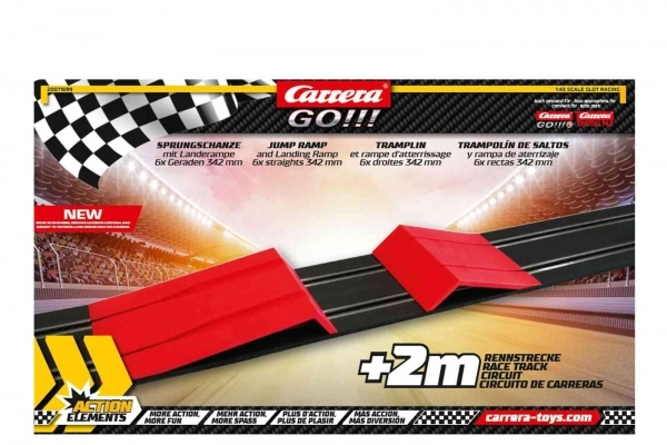 Étendez votre univers de circuit avec une rampe de saut pour CARRERA GO!!! à l’échelle 1:43. Obtenez plus d’action, une piste plus longue et des courses plus palpitantes grâce à la rampe d’élan, la rampe d’atterrissage et 6 sections droites de 342 mm – soit jusqu’à +2 mètres de piste au total. Compatible également avec CARRERA DIGITAL 143.