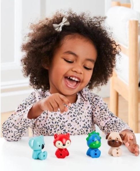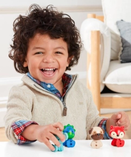 L’ensemble Skip Hop Zoo Crew réjouira chaque chambre d’enfant. Quatre figurines colorées – Preston Pug (chien), Ferguson Fox (renard), Kenzie Koala et Dakota Dino – sont conçues pour les petites mains afin d’être facilement saisies, transportées et positionnées de différentes manières. Grâce à leurs parties mobiles, elles peuvent se tenir debout, s’asseoir et poser, ce qui favorise la création d’histoires.