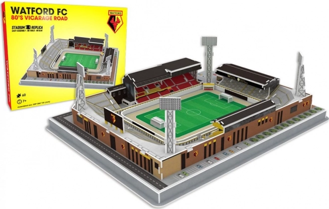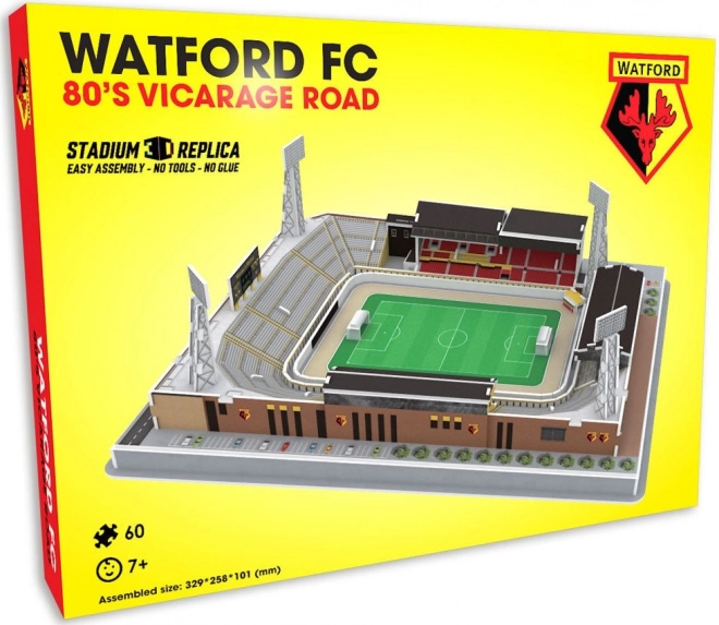 Puzzle 3D du stade Vicarage Road, domicile du FC Watford, offre aux fans de football un excellent divertissement sans besoin de ciseaux ni de colle.