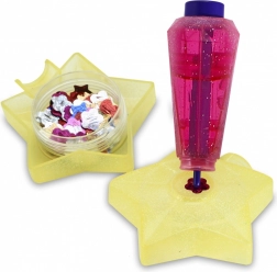 La baguette étoilée contient des centaines de décorations scintillantes, réutilisables pour décorer les peluches.
