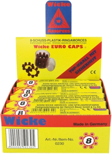 Pratique ensemble de capsules pour pistolets jouets offrant au total 48 couronnes de 8 coups dans un petit tube en plastique résistant. Idéal pour un long divertissement, un transport facile et un rangement sécurisé. 48 couronnes, 8 coups par couronne, tube en plastique, âge 3+.