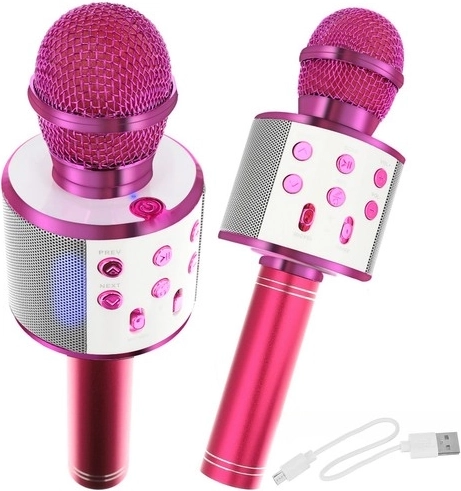 Ce microphone karaoke multifonction de couleur rose élégante combine micro et haut-parleur puissant en un seul appareil. Associez-le facilement via le Bluetooth 4.0 ou branchez-le par câble pour lire de la musique, chanter, enregistrer des podcasts ou streamer. Grâce à la réduction du bruit, la voix reste claire et les effets Bass, Soprano et Echo apportent une touche professionnelle à votre prestation.