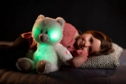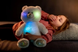 L'ours s'illumine et change de couleur dans le noir pour une sensation de sécurité et de confort.