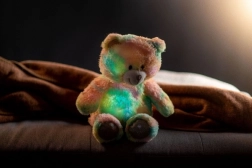 L'ourson est non seulement doux au toucher, mais il éclaire aussi l'obscurité avec ses couleurs changeantes, créant une atmosphère magique. En appuyant sur la patte, il joue des mélodies relaxantes, apaisant chaque enfant.