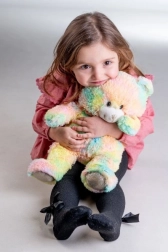 Animal en peluche avec un pelage arc-en-ciel, attrayant non seulement par son aspect, mais aussi par sa douceur au toucher.