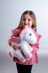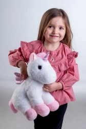 La licorne en peluche avec son doux pelage blanc et ses détails roses est idéale pour les câlins et le réconfort.