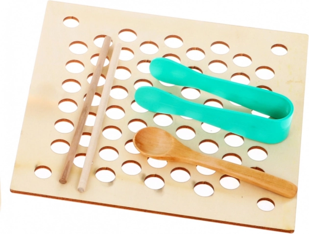 | | - grande planche avec trous pour lettres, chiffres et tiges, - petite planche avec trous pour perles, - 15 animaux marins, - 10 chiffres de 0 à 9, - 5 formes géométriques : carré, triangle, étoile, cœur, cercle, - 2 cannes à pêche, - 2 baguettes, - pince, - petite cuillère, - corde, - 5 moules à petits paniers, - 18 cartes modèles recto verso, - 60 perles (12 roses, vertes, bleues, jaunes, orange), - 50 anneaux (10 bleus, violets, roses, jaunes, verts), - 5 pinces. |