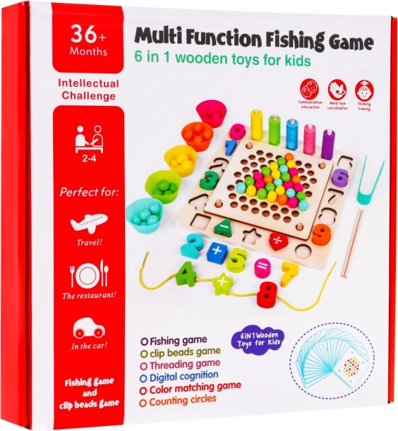 | | Ce jouet est destiné aux enfants à partir de trois ans. Il contient 6 propositions de jeux pour les plus petits. Pêche à la canne L’enfant doit attraper un poisson ou un autre animal marin avec une canne munie d’un aimant, ce qui entraîne la coordination, la bonne préhension et la patience. Jeu de perles à reproduire selon les cartes modèles L’enfant tire au sort l’une des 18 cartes puis essaie de reproduire le motif de la carte sur la planche percée, entraînant ainsi la perception visuelle, la motricité globale, la coordination œil-main, tout en développant la mémoire et l’orientation spatiale. Classement des lettres et des chiffres Classement des lettres et des chiffres L’enfant dispose les lettres et les chiffres dans les emplacements correspondants de la planche, exerce son sens de l’observation, acquiert des compétences d’orientation spatiale et développe sa dextérité manuelle. Association des couleurs L’enfant place des anneaux colorés sur les tiges, en essayant d’obtenir dix anneaux identiques sur chaque tige, ce qui exerce la coordination œil-main et une bonne prise en main. Enfilage de lettres et de chiffres sur une corde L’enfant essaie d’enfiler les lettres et les chiffres sur une corde, développant motricité, dextérité, créativité et patience. Petits paniers colorés L’enfant insère des billes colorées dans des moules à petits paniers, en essayant d’avoir des billes de même couleur dans chaque moule, apprend à reconnaître les couleurs et développe motricité et orientation spatiale. Le jouet est entièrement fabriqué en bois, il est donc durable et sûr pour l’enfant. |