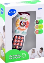 La télécommande propose les fonctions marche/arrêt, mélodies et sons, réglage du volume, changement de chaînes et changement de modes. Grâce aux fonctions parlantes en anglais, l’enfant découvre ses premiers mots tout en développant sa motricité fine et ses perceptions sensorielles.