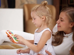 L’enfant obtient sa propre “télécommande” et peut “changer de chaîne” en toute sécurité. Le jouet parlant en anglais aide à la prononciation des premiers mots.