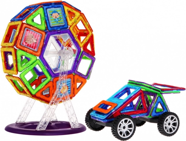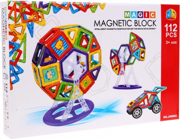 Découvrez non seulement le plaisir, mais aussi l’apprentissage avec ce jeu de construction de 112 pièces. Des aimants puissants permettent des assemblages faciles et la création de modèles 2D et 3D – de la petite voiture jusqu’à la grande roue. Les pièces colorées et translucides stimulent la créativité, la pensée logique et la représentation spatiale des enfants, tandis que des matériaux résistants assurent un jeu en toute sécurité.