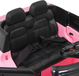 Les parents apprécieront la télécommande 2,4 GHz avec trois vitesses et un bouton de STOP d’urgence. Le confort est assuré par quatre amortisseurs (2× à l’avant, 2× à l’arrière), des ceintures de sécurité et des portes ouvrantes avec blocage. Le panneau audio permet la lecture depuis une clé USB, une carte SD, via AUX ainsi que des mélodies intégrées; on retrouve aussi le klaxon sur le volant et un indicateur de charge.