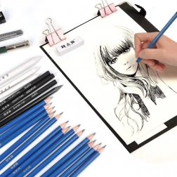 Ensemble de dessin complet pour croquis et hachures dans un étui zippé pratique. Vous y trouverez des crayons de différentes duretés, des fusains, des bâtons de graphite, des estompes, des gommes et des taille-crayons – tout ce dont vous avez besoin pour un tracé précis comme pour un croquis libre. Idéal pour débutants et avancés, avec un accent sur un équipement riche, un rangement organisé et une mobilité.