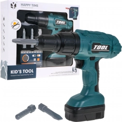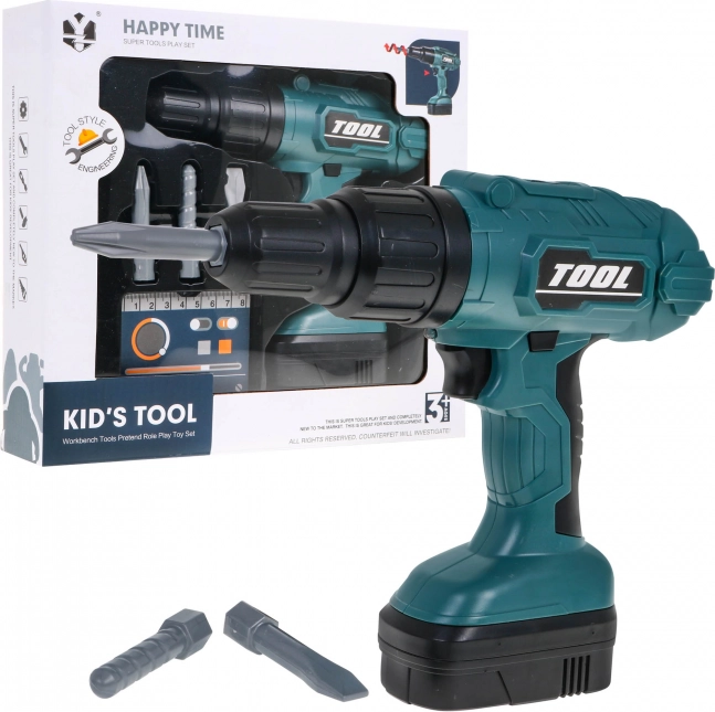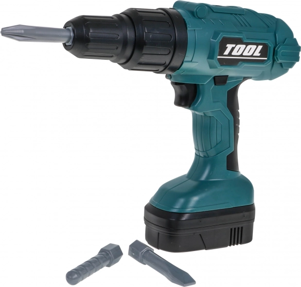 Le set comprend trois accessoires : foret, embout plat et embout cruciforme. Les enfants apprennent facilement à changer les embouts et à essayer diverses tâches comme de vrais artisans.