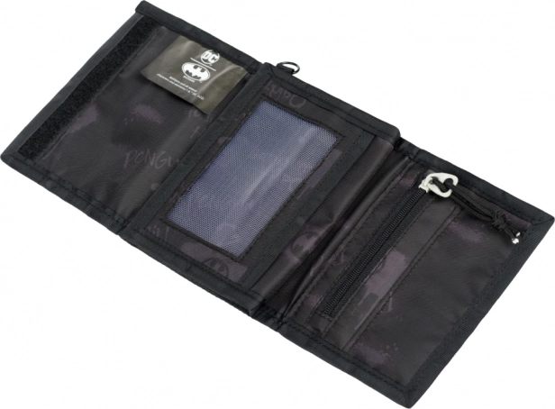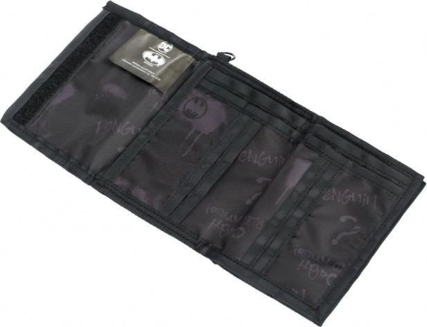 Ce portefeuille unique sous licence officielle DC Comics arbore un design marqué à l’effigie de Batman. Il est doté de plusieurs compartiments pour cartes et espèces, assurant une excellente organisation de vos objets de valeur. La fermeture pratique à scratch et l’œillet pour fixation à un mousqueton renforcent sa fonctionnalité et sa sécurité.