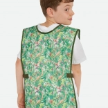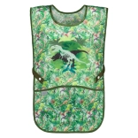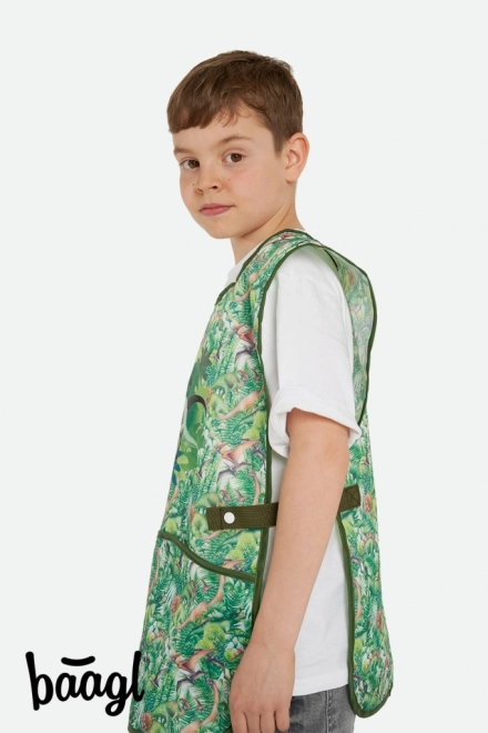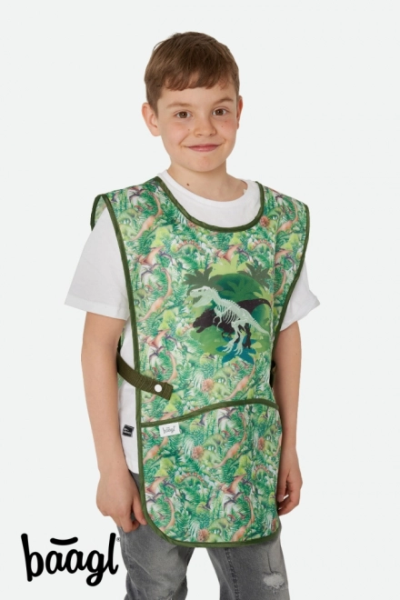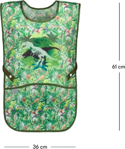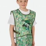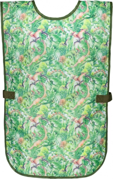 Ce tablier se distingue par ses graphismes colorés incluant un motif amusant de dinosaures et de jungle.