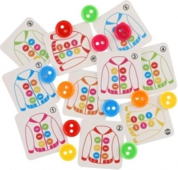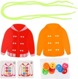 Le jeu éducatif Couture de boutons est conçu pour développer la motricité fine et apprendre aux enfants à reconnaître les couleurs et à compter. Le set comprend :