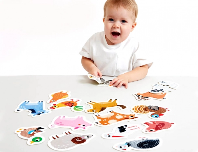 Premier puzzle éducatif pour les tout-petits : Les puzzles CzuCzu en deux pièces avec des animaux de la ferme développent la motricité fine, la concentration et le sens de l’observation. L’emballage contient 15 adorables animaux, chacun composé de 2 grandes pièces idéales pour les petites mains des enfants. Une excellente idée de cadeau et une première initiation au monde des puzzles.