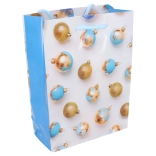 Sac cadeau taille M aux dimensions 26x32x11 cm, décliné en différents motifs de Noël, idéal pour emballer élégamment vos cadeaux de fin d’année.