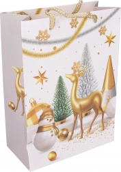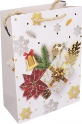 Sac cadeau stylé taille S, dimensions 18 × 24 × 8,5 cm, idéal pour emballer de petits cadeaux. Propose des motifs de Noël, une construction robuste et un transport confortable grâce à des poignées pratiques.