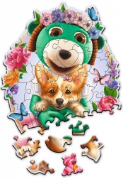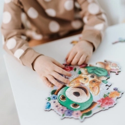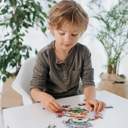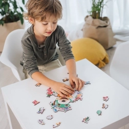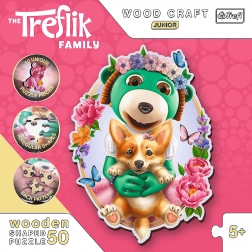 Puzzle en bois de la gamme premium Wood Craft Junior offrant divertissement et défi pour les enfants avec le motif des Treflíci heureux. Le puzzle est recto-verso, avec des pièces aux formes uniques et une précision de découpe laser.