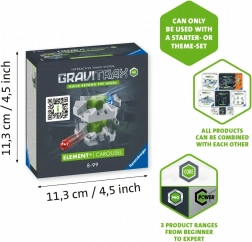Le carrousel est entièrement compatible avec tous les ensembles GraviTrax et GraviTrax PRO, vous permettant d’étendre votre circuit presque à l’infini. Créez des constructions multi-niveaux, testez vitesses et trajectoires, et observez combien de fois vos billes parviennent à traverser le carrousel.