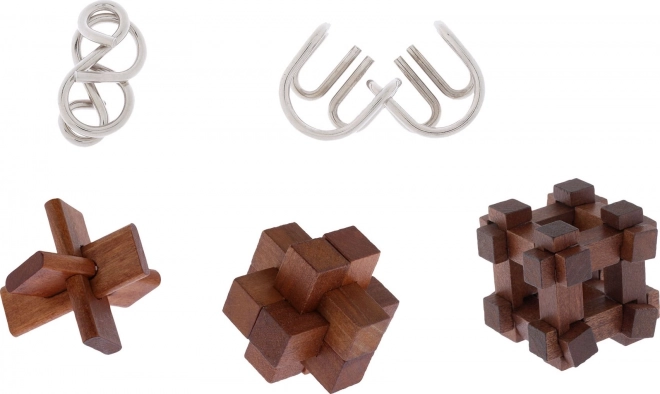 - 5 casse-têtes uniques – 3 en bois et 2 en métal