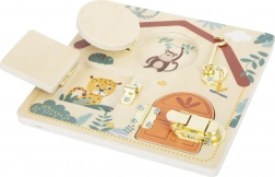 Cette planche d’activités en bois de qualité, en forme de petite maison, offre aux enfants dès 3 ans un défi sûr : ouvrir, fermer et redécouvrir. Les différents types de verrous, loquets et boucles enseignent des compétences pratiques de la vie quotidienne, tandis que le design ludique avec des animaux du Safari encourage la curiosité et la concentration.