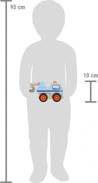 Ce véhicule de remorquage en bois, robuste, est idéal pour les petits amateurs de voitures. Grâce à la grue fonctionnelle avec crochet, les enfants peuvent facilement simuler le remorquage de véhicules, stimuler leur imagination et découvrir les métiers en jouant. La cabine offre de la place pour une figurine (non incluse) et les roues caoutchoutées assurent un déplacement silencieux et fluide.
