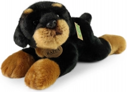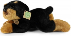 Adorable chien en peluche Rottweiler en position allongée de 30 cm qui ravira enfants et adultes. Il présente une finition réaliste, un peluche très douce de haute qualité et un rembourrage écoresponsable à base de bouteilles PET recyclées, sans danger même pour les tout-petits.